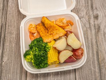 Our specialty dish is our famous seafood platter that includes a combination of shrimp, crab,, and veggies served with a side of garlic or Cajun butter sauce.